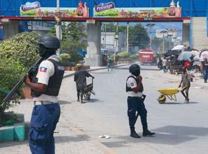 0 Agentes de la policía nacional patrullan una intersección en Puerto Príncipe, Haití.