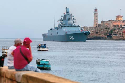 LA HABANA. Unas personas observan desde lejos la fragata rusa Almirante Gorshkov a su llegada al puerto de La Habana, Cuba. Una flotilla de buques de guerra rusos, incluyendo un submarino nuclear, llegó a aguas cubanas para realizar una serie de ejercicios militares en el Caribe, recordando los tiempos de la Guerra Fría. P9