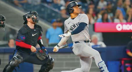 esa carrera, el dominicano tiene un obstáculo enorme en su camino, su compañero de equipo, Aaron “El Juez” Judge, que lidera la Liga Americana en cuadrangulares, carreras empujadas, dobles y slugging, entre otras categorías, con una línea ofensiva de .314/.433/.702 en 87 partidos, en los que ha anotado 67 carreras y ha conectado 98 imparables.