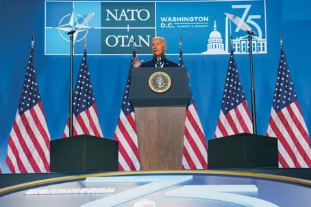 pWASHINGTON. El presidente de los Estados Unidos, Joe Biden, dijo ayer, en una rueda de prensa sobre las relaciones de la OTAN y su país, que seguirá en la campaña electoral buscando la reelección, a pesar de las múltiples voces que piden que abandone esas aspiraciones y de los errores que sigue cometiendo como ayer mismo cuando llamó “presidente Putin” al mandatario ucraniano Volodomir Zelenskyy. b P12