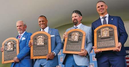 p El Salón de la Fama del Béisbol, localizado en Cooperstown, Nueva York, incluyó ayer a cuatro glorias del béisbol. Ellos son el dominicano Adrián Beltré, segundo desde la izquierda, y los estadounidenses Jim Leyland, exdirigente, y los exjugadores Todd Helton y Joe Mauer. Todos recibieron el honor de convertirse en inmortales del béisbol de las Grandes Ligas. Beltré es el quinto dominicano y se une a los inmortales Juan Marichal, Pedro Martínez, David Ortiz y Vladimir Guerrero en ese recinto. b P30