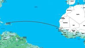 0 Ruta apróximada de la embarcación arrastrada desde Senegal hasta la costa de Río San Juan, provincia María Trinidad Sánchez.