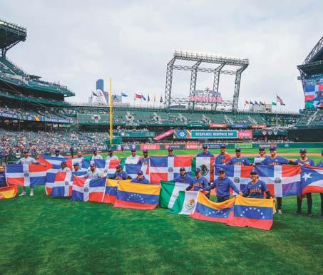 SEATTLE. La Major League Baseball inició el domingo la conmemoración del Mes de la Herencia Hispana, con una serie de eventos para destacar las contribuciones de los jugadores latinos a ese deporte. El 27 por ciento de los jugadores que participaron en el Día Inaugural del torneo este año, en abril pasado, fue de descendencia hispana y el Informe Anual de ESPN Sports Poll mostró que más del 60 % de los hispanos de EE. UU., se considera aficionado a la MLB. En la imagen, jugadores latinos de los Marineros de Seattle y Rangers de Texas sostienen las banderas de sus países, entre ellos Cuba, Puerto Rico, México, Venezuela y la República Dominicana.