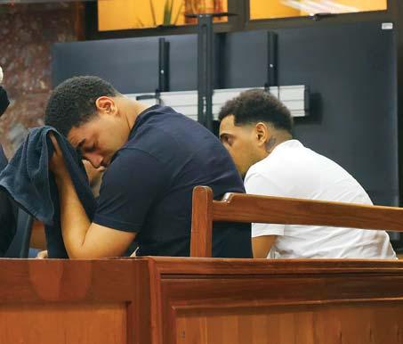 SANTO DOMINGO. Wesly Vicent Carmona (el Dotolcito), quien fue condenado a 15 años de prisión por robo agravado y asociación de malhechores por el atraco en el que Joshua Fernández fue asesinado, se limpia el sudor y luce pensativo durante la audiencia de ayer, en la que tanto él, como los demás condenados, Alison de Jesús Pérez Mejía (Chiquito) y Luis Brito Troncoso (Luisito), apelaron sus condenas ante la Corte de Apelación. P9