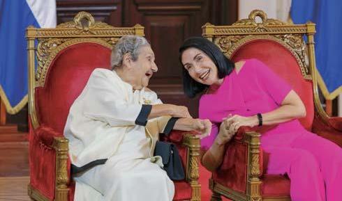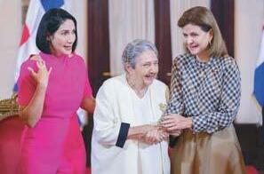 SANTO DOMINGO. La señora Blanca García, investigadora en bioanálisis, sonríe al ser reconocida ayer por el Gobierno dominicano con el premio al Adulto Mayor, que entrega el Consejo Nacional de la Persona Envejeciente, en un acto que estuvo encabezado por la vicepresidenta Raquel Peña, la primera dama Raquel Arbaje y el director del Conape, el doctor José García y otros funcionarios públicos. P8