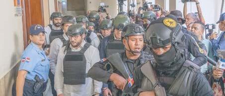 0 Los imputados Hugo Beras, Jochi Gómez, Pedro Padovani, Samuel Baquero, Frank Díaz, Juan Álvarez y Carlos Peguero son conducidos a la sala de audiencia.