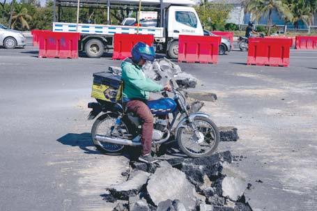 SANTO DOMINGO. A pesar de que su inauguración parcial se produjo hace apenas cuatro meses y la semana pasada se dio apertura a una segunda fase de la habilitación de carriles para agilizar el tránsito, ayer el Ministerio de Obras Públicas y Comunicaciones comenzó a picar el asfalto para la instalación del sistema de drenaje de las obras de tránsito en el kilómetro 9 de la Autopista Duarte, afectando el desplazamiento de los vehículos. P7