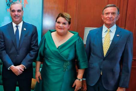 p SAN JUAN, Puerto Rico. El presidente de la República Dominicana, Luis Abinader, estuvo presente en la toma de posesión de la nueva gobernadora de Puerto Rico, Jenniffer González, quien aseguró que se fortalecerán las relaciones entre el país y la isla durante el mandato de la líder del partido anexionista de Puerto Rico. En la foto figuran Abinader, González y el ministro de Relaciones Exteriores, Roberto Álvarez. b P4