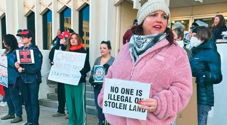 OKLAHOMA CITY. Erica Watkins, de Tulsa, directora estatal de Defensa de la Democracia, sostiene un cartel para protestar contra el Consejo de Educación de Oklahoma, que estudia una norma que exigiría a los padres que matriculen a sus hijos en escuelas públicas que presenten pruebas de la ciudadanía estadounidense o de su estatus migratorio legal, el martes 28 de enero de 2025 en Oklahoma City.