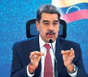 p CARACAS. Una mujer camina frente a una decoración navideña ayer, cuando los venezolanos recibieron una Navidad nuevamente adelantada por el presidente Nicolás Maduro, en medio de la tensión por el despliegue militar de EE.UU. cerca de sus aguas. Esto no ha logrado quebrar la relativa normalidad en el país, marcada por dificultades económicas, fallas en servicios básicos y la incertidumbre política que dejaron las presidenciales de 2024. P14 . LLEGÓ