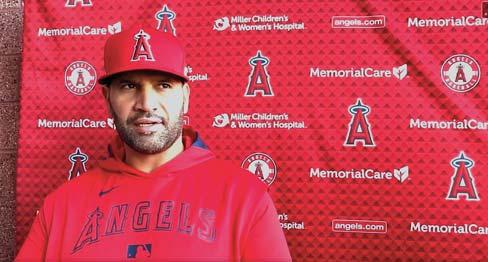 0 Albert Pujols conversa con la prensa cuando participó en el campo de entrenamientos de los Angelinos, en marzo pasado.