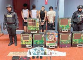 Durante la intervención, las autoridades se incautaron de 54 porciones de presunta marihuana; 41 porciones de un material rocoso, presumiblemente crack; y diez porciones de un polvo blanco, presumiblemente cocaína. Asimismo, fueron ocupados dos radios de comunicación, 14 cajetillas de cigarrillos de distintas marcas, dos cuchillos y siete máquinas tragamonedas utilizadas de manera ilegal en lugares donde operaban distintos puntos de sustancias narcóticas. b