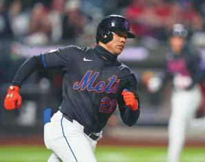 Junto a Ruth y Foxx Con 102 juegos para los Mets, Soto se unió a Babe Ruth (1920) y Jimmie Foxx (1936), como los únicos con más de 20 HRs, 75 BBs, y 10 BRs en sus primeros 100 partidos con nuevo equipo. b