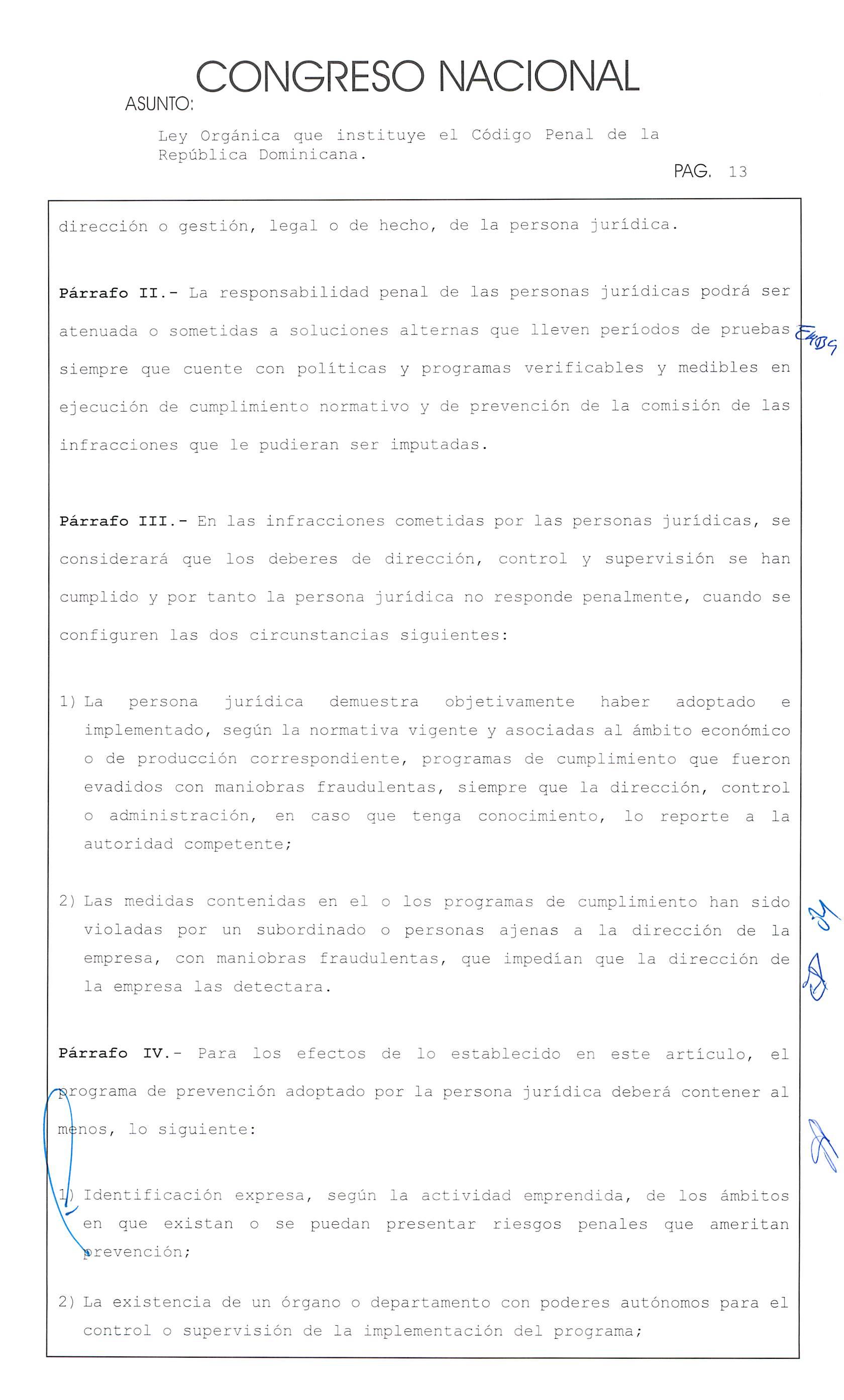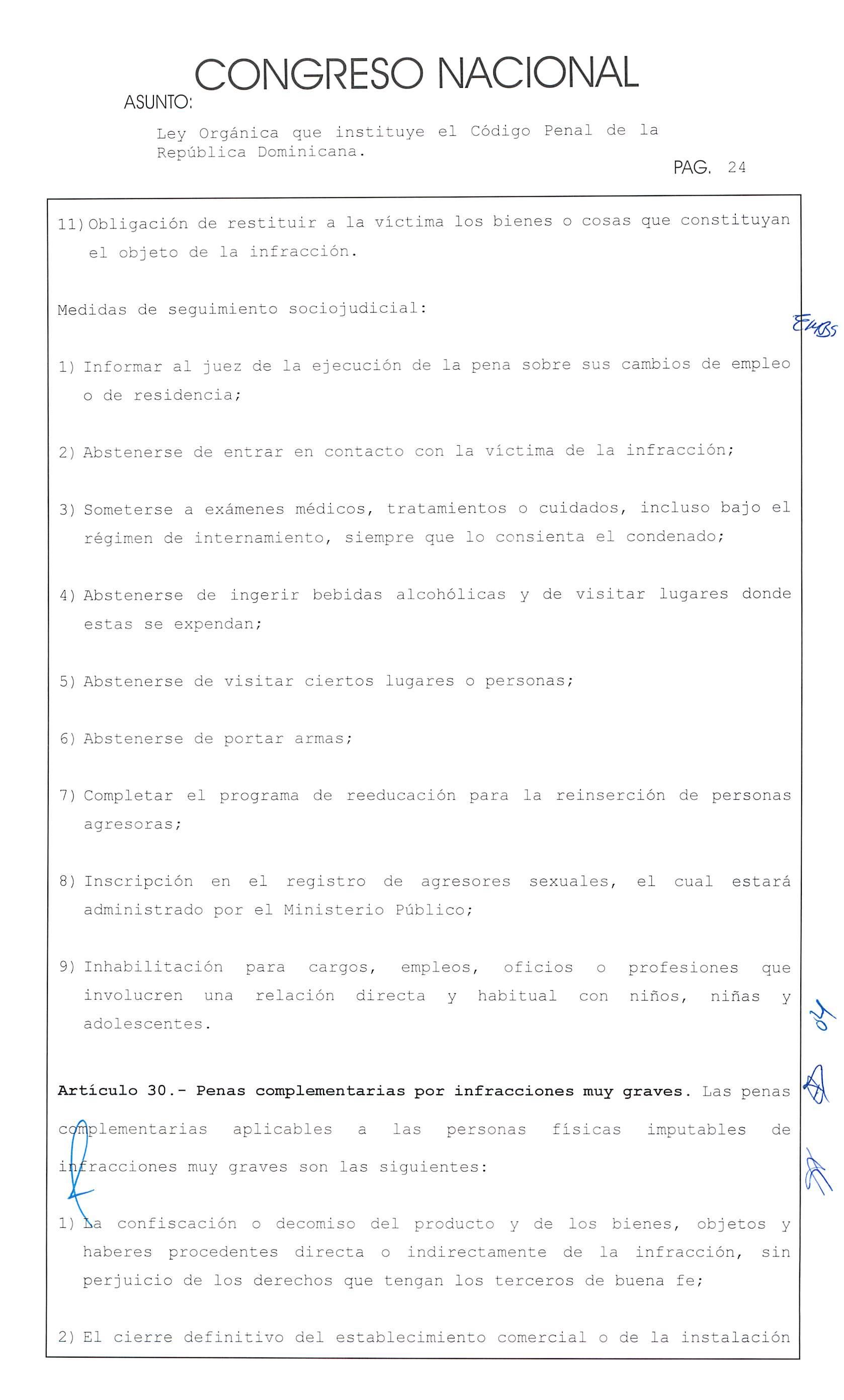 Ley Orgánica que instituye el Código Penal de la República Dominicana.