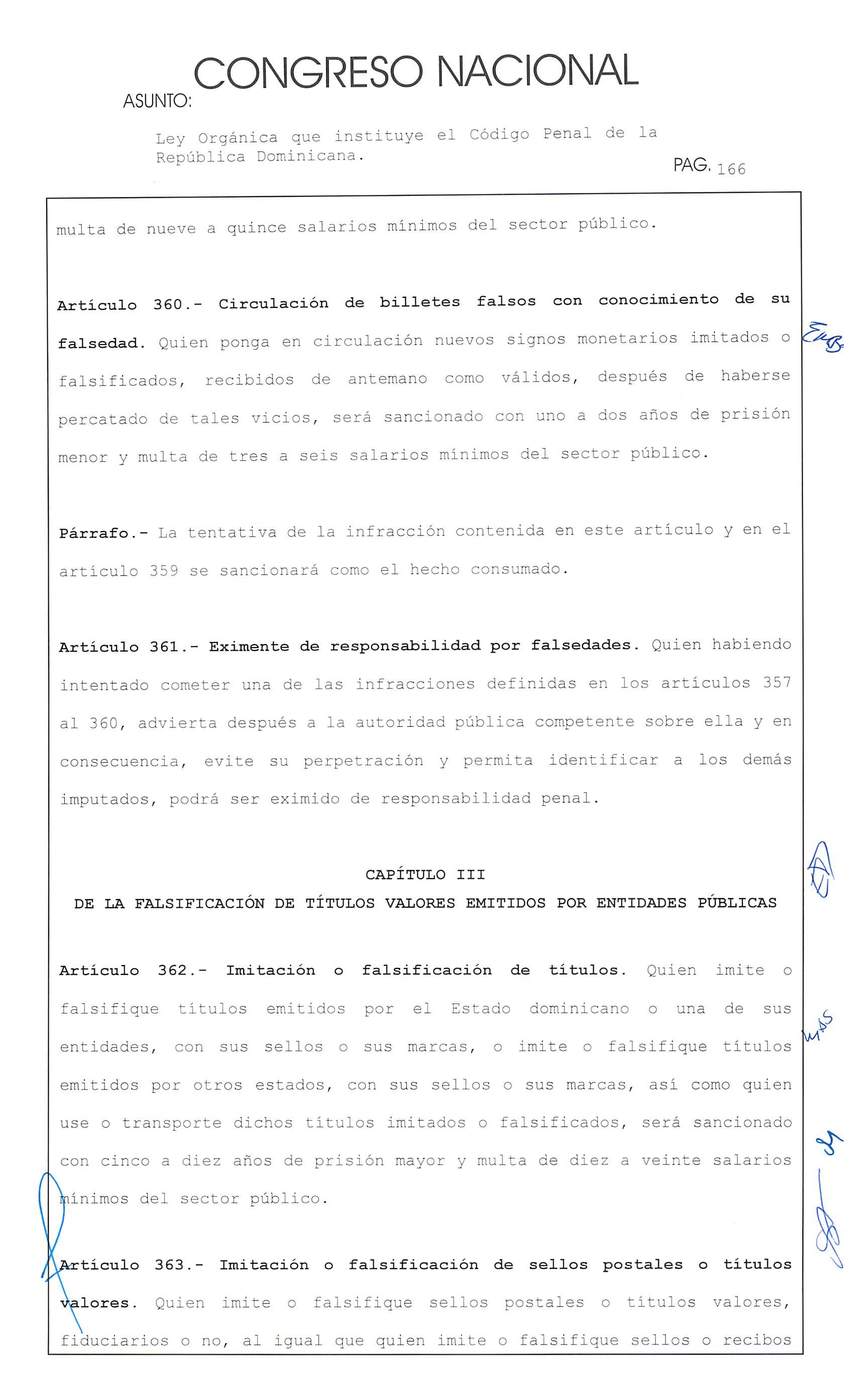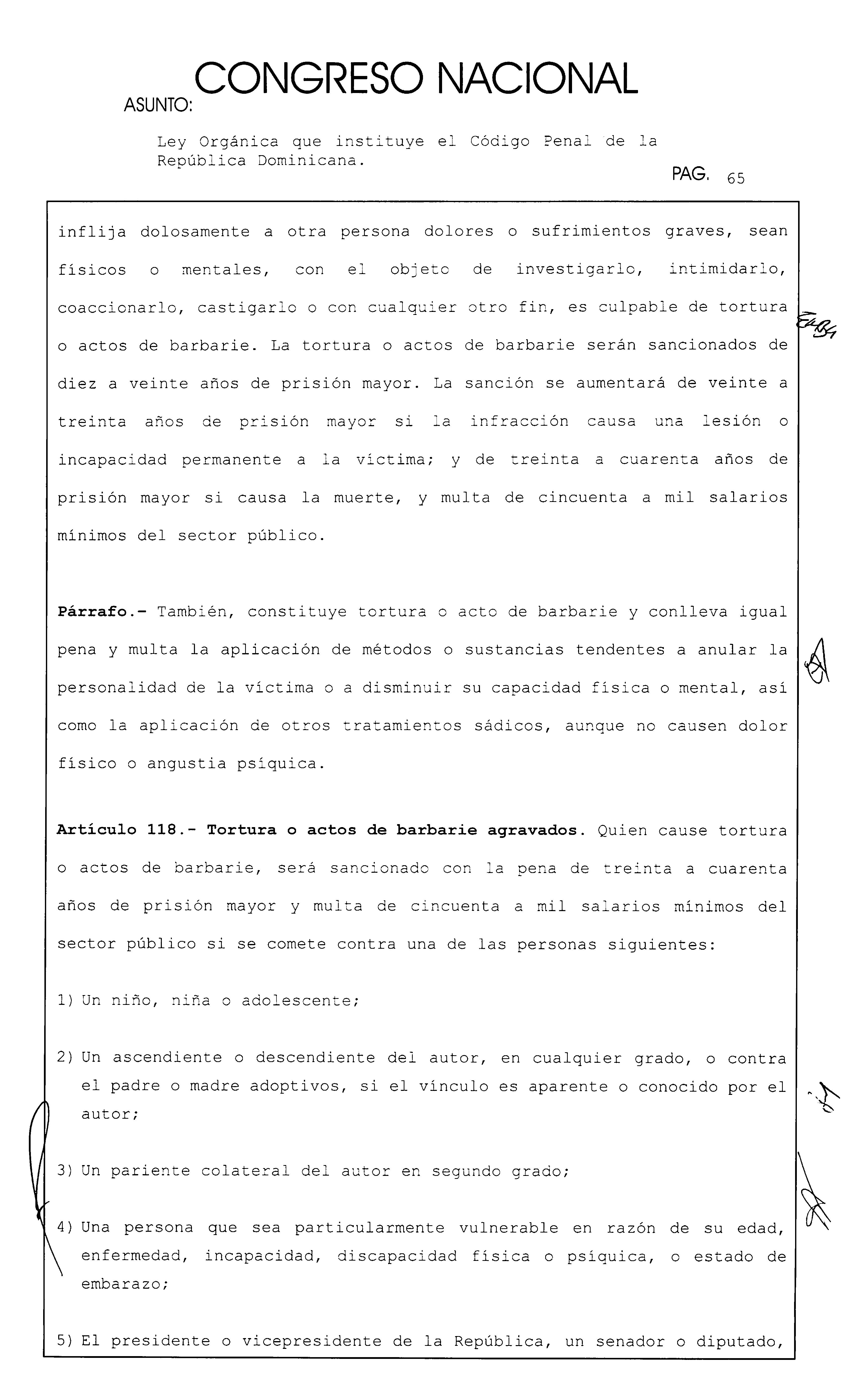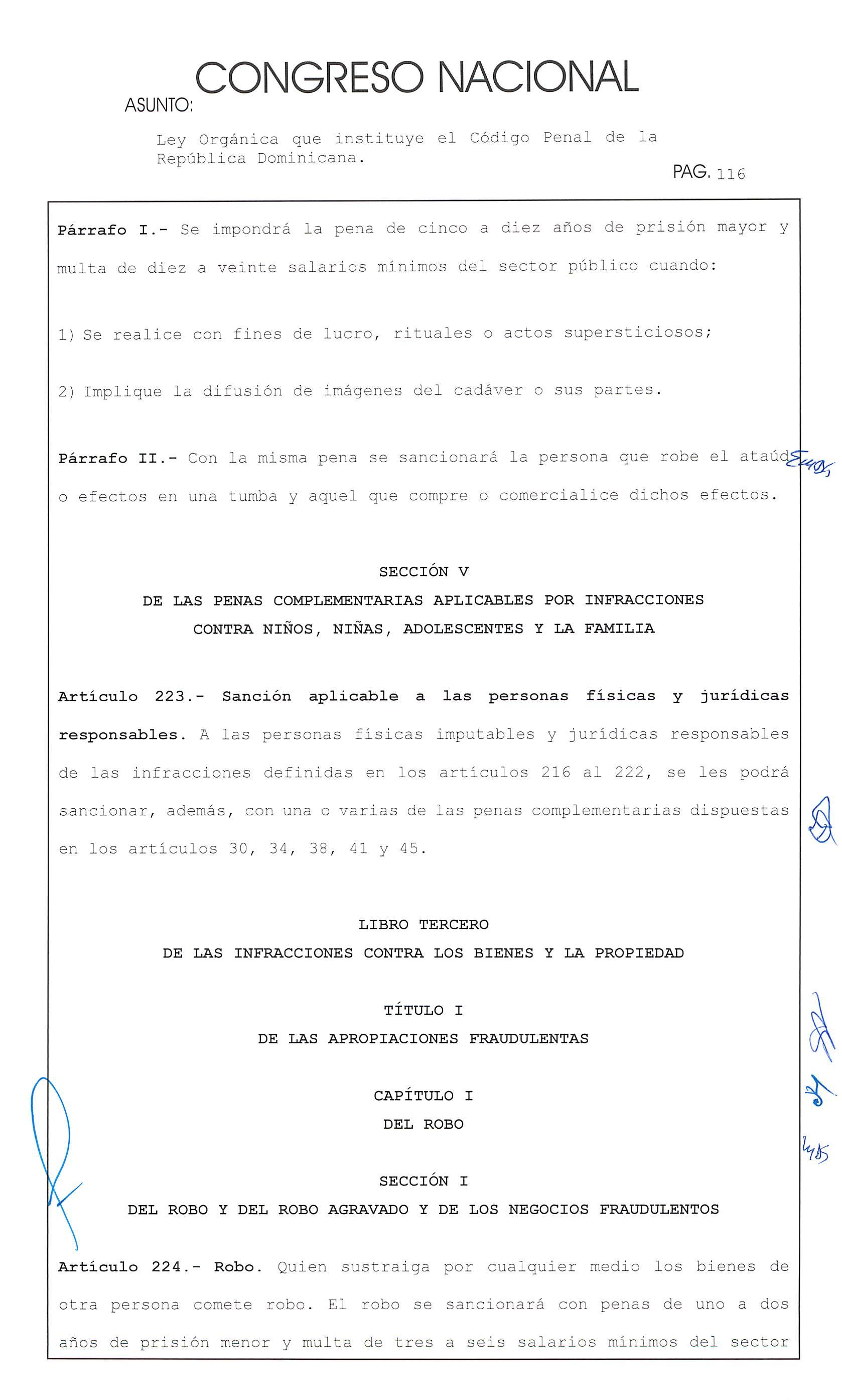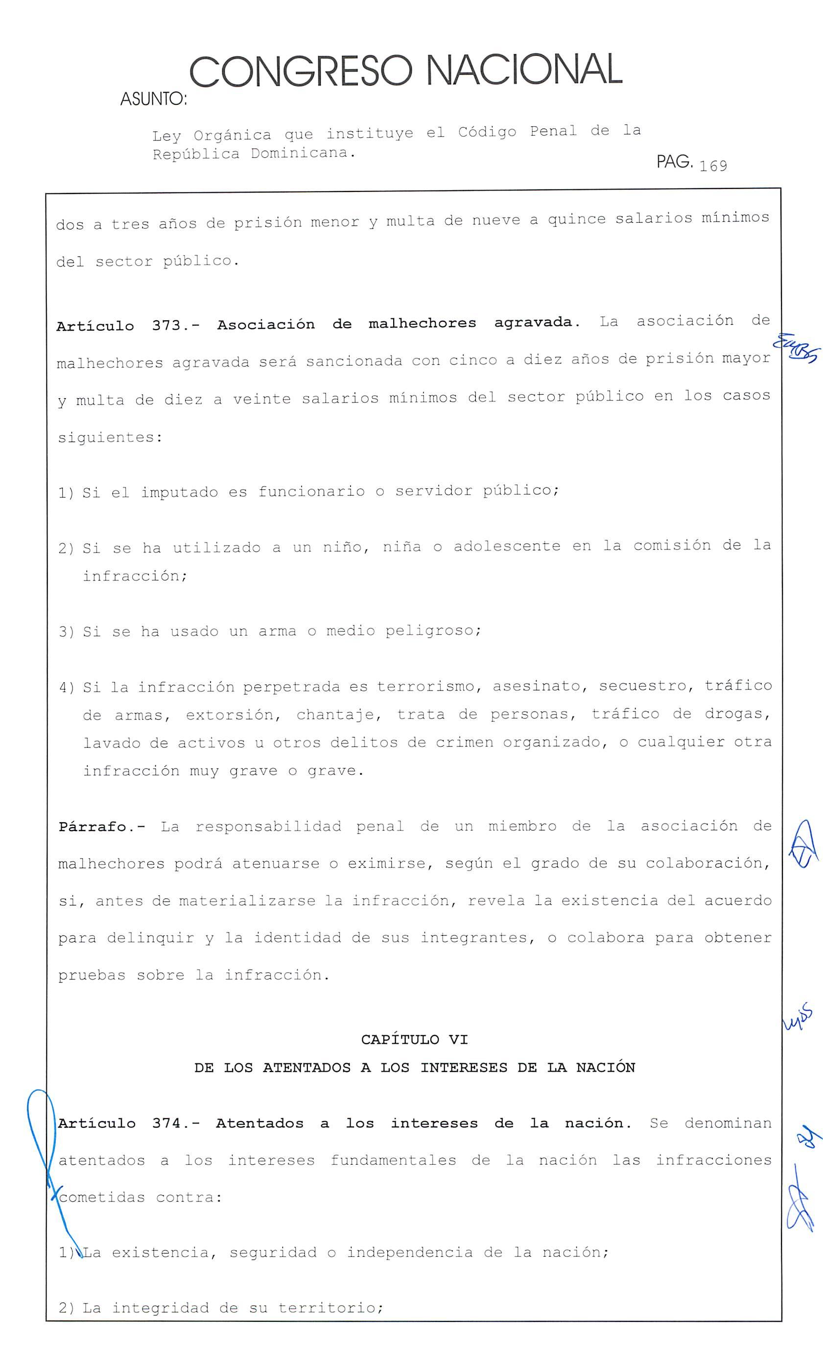 Ley Orgánica que instituye el Código Penal de la República Dominicana. hao PAG. 169