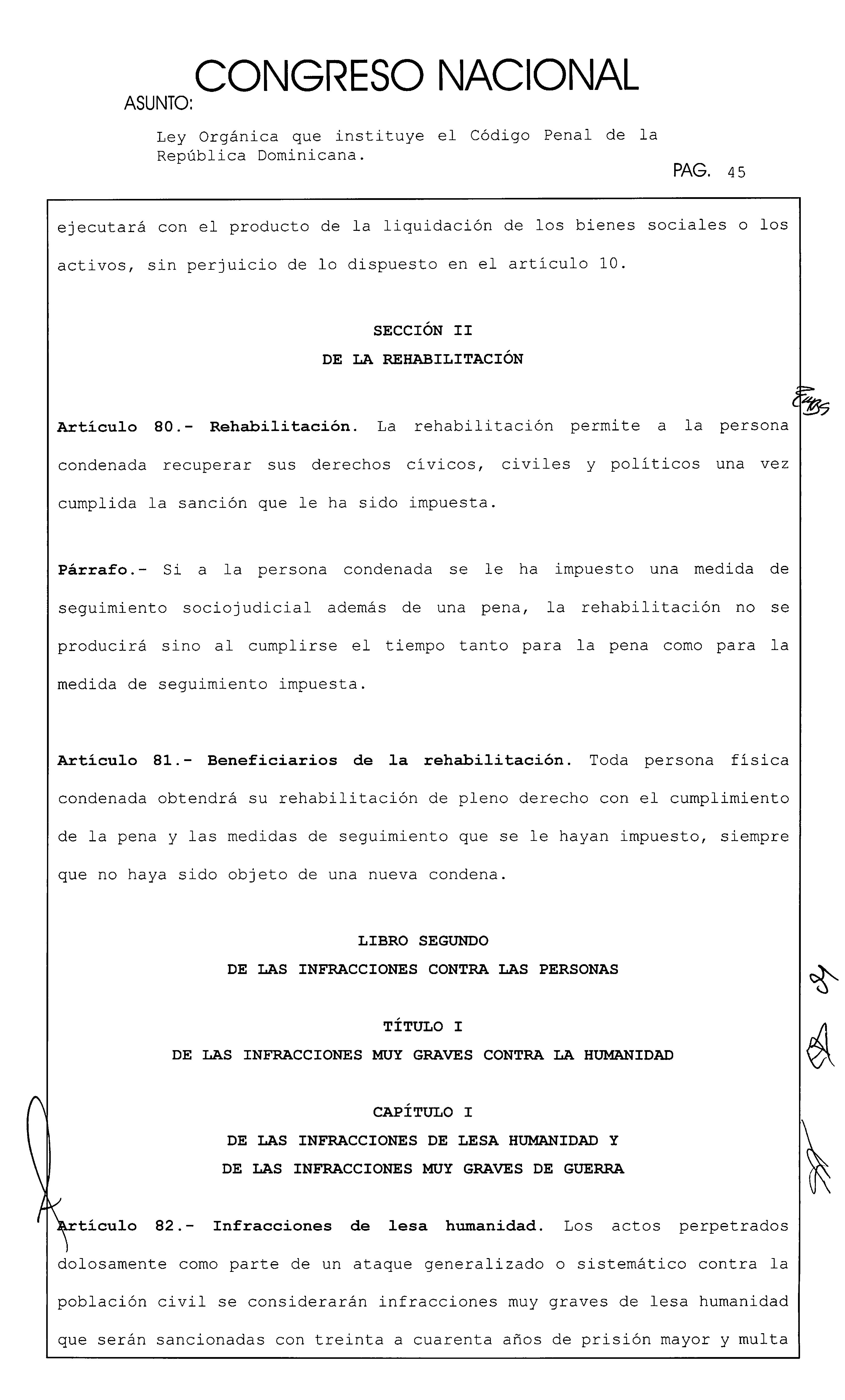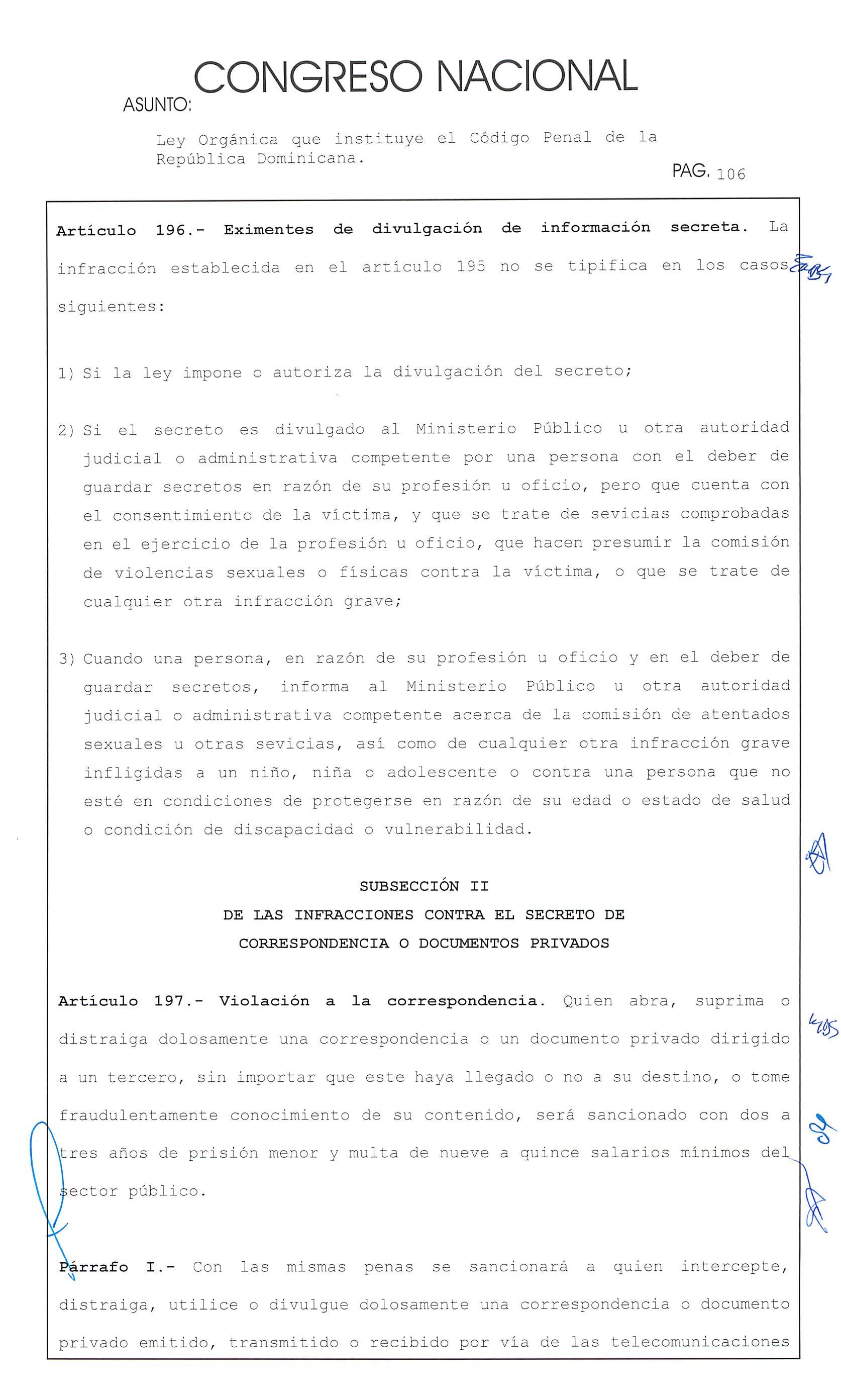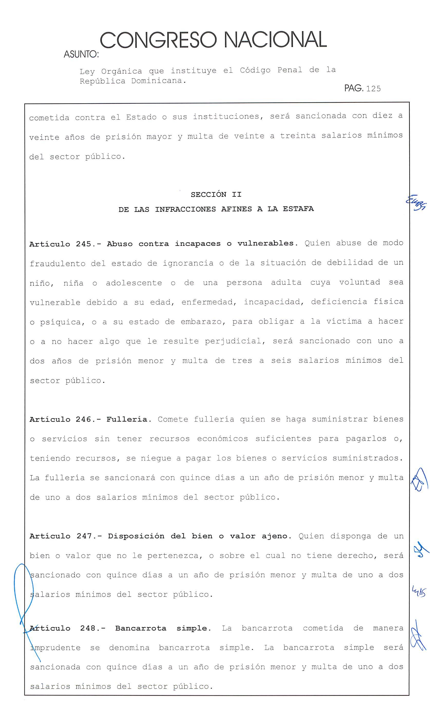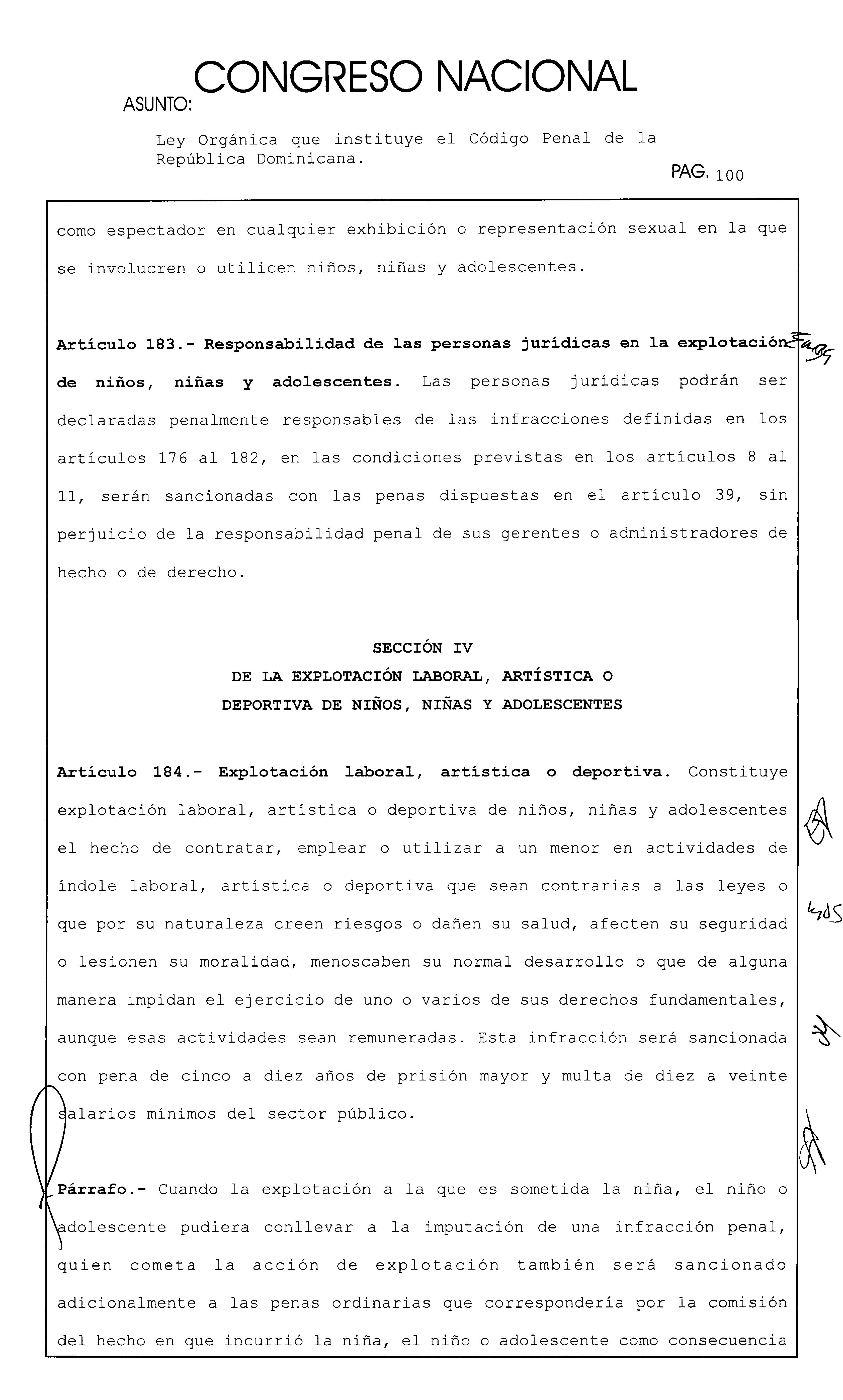 Ley Orgánica que instituye el Código Penal de la República Dominicana. hao PAG. 169