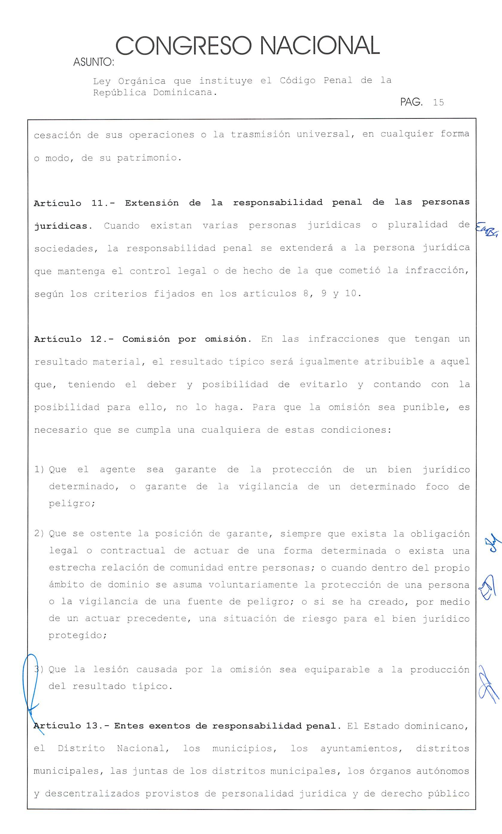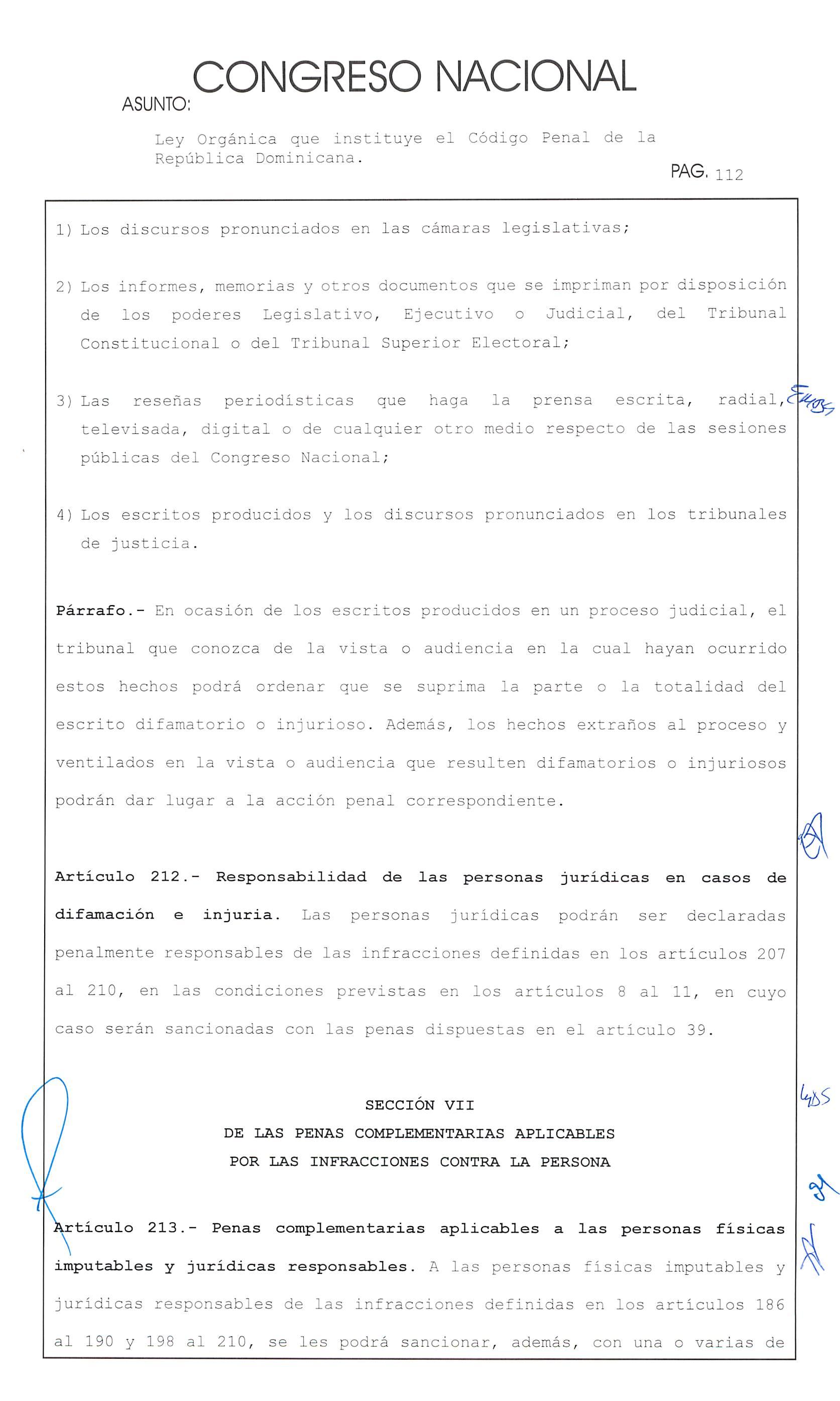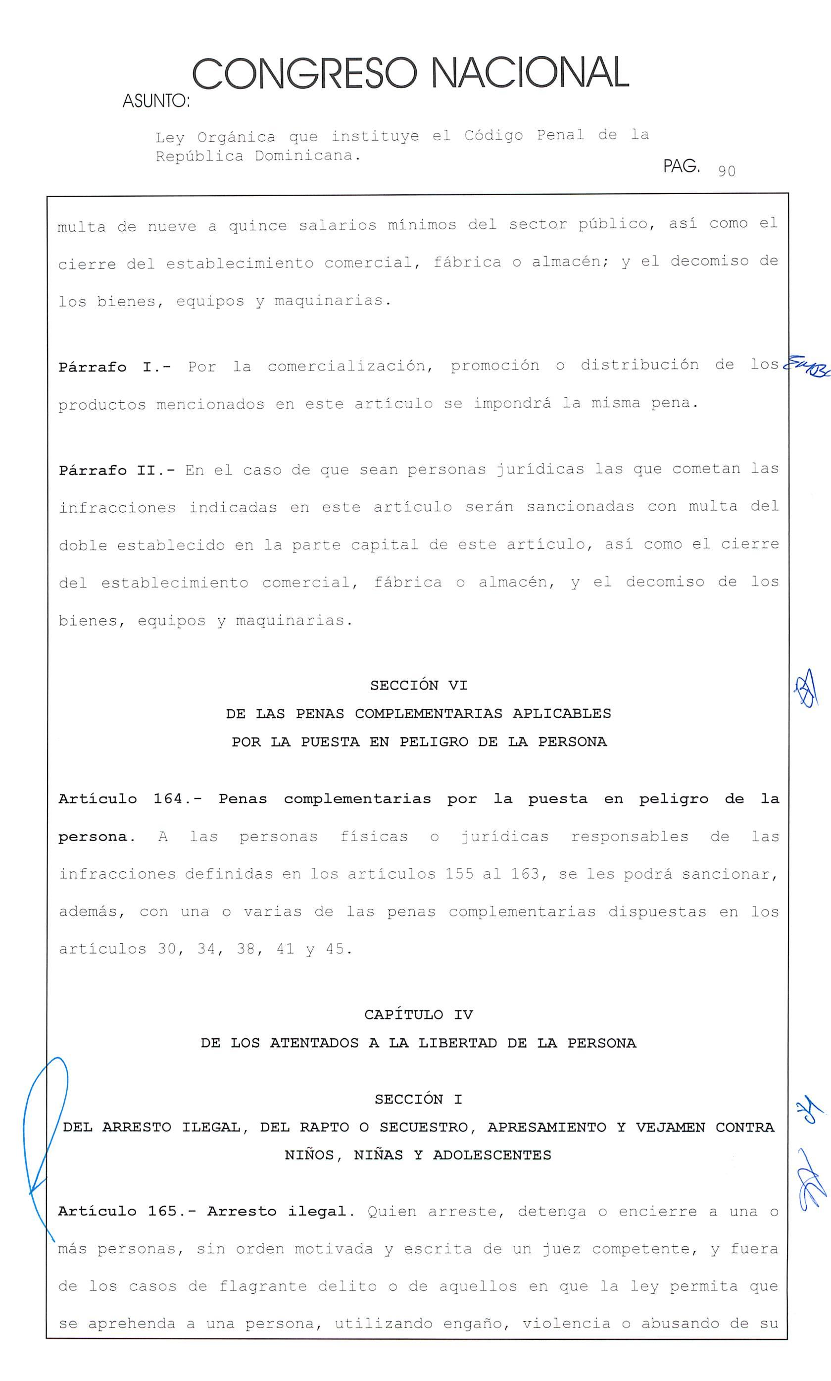Ley Orgánica que instituye el Código Penal de la República Dominicana. . HAU. 153