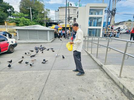 SDE. Raúl Fermín, periodista de profesión y amante de las aves, realizó una parada técnica para alimentar a las palomas en la estación Rosa Duarte en la Bomba de Los Mina. Sin esperar retribución, expresó: “La obra sea para Dios”. El hombre y las palomas