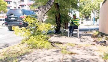 SANTO DOMINGO. La vieja y desgastada acera de la calle Rosa Duarte, próxima a la avenida México, es un obstáculo para los caminantes. Una parte se ha levantado por efecto de las raíces de algunos árboles y en otra los pedazos de bloques rotos obstruyen el paseo. Aunque es un viejo problema, las autoridades no lo han resuelto. El presidente Luis Abinader dispuso de cuatro mil millones de pesos para la construcción de aceras tanto en el Distrito Nacional como en la mayoría de las provincias del país y, quienes residen, estudian o trabajan en el área, esperan que la de la Rosa Duarte sea tomada en cuenta. b