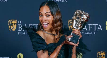 p LONDRES. La actriz de origen dominicano Zoé Saldaña se impuso a su compañera de elenco, Selena Gómez, y al resto de las nominadas de los premios BAFTA: Ariana Grande (“Wicked”), Isabella Rossellini (“Cónclave”), Felicity Jones (“The Brutalist”) y Jamie Lee Curtis (“The Last Showgirl”) para alzarse anoche con el galardón a Mejor Actriz de Reparto por su trabajo en la película musical “Emilia Pérez”. Este es el cuarto premio por su actuación en la cinta dirigida por Jacques Audiard. b P12