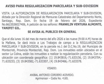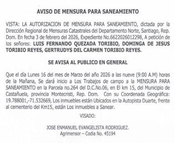 Por su lado, el director del Indrhi, Olmedo Caba Romano, citó las demás obras entregadas simultáneamente entre las cuales mencionó la rehabilitación del Proyecto de Aglipo II, construcción de alcantarillas de la comunidad del Aguacate, alcantarillado en Arenoso y la compuerta de descarga del río Yuna en Arenoso. b