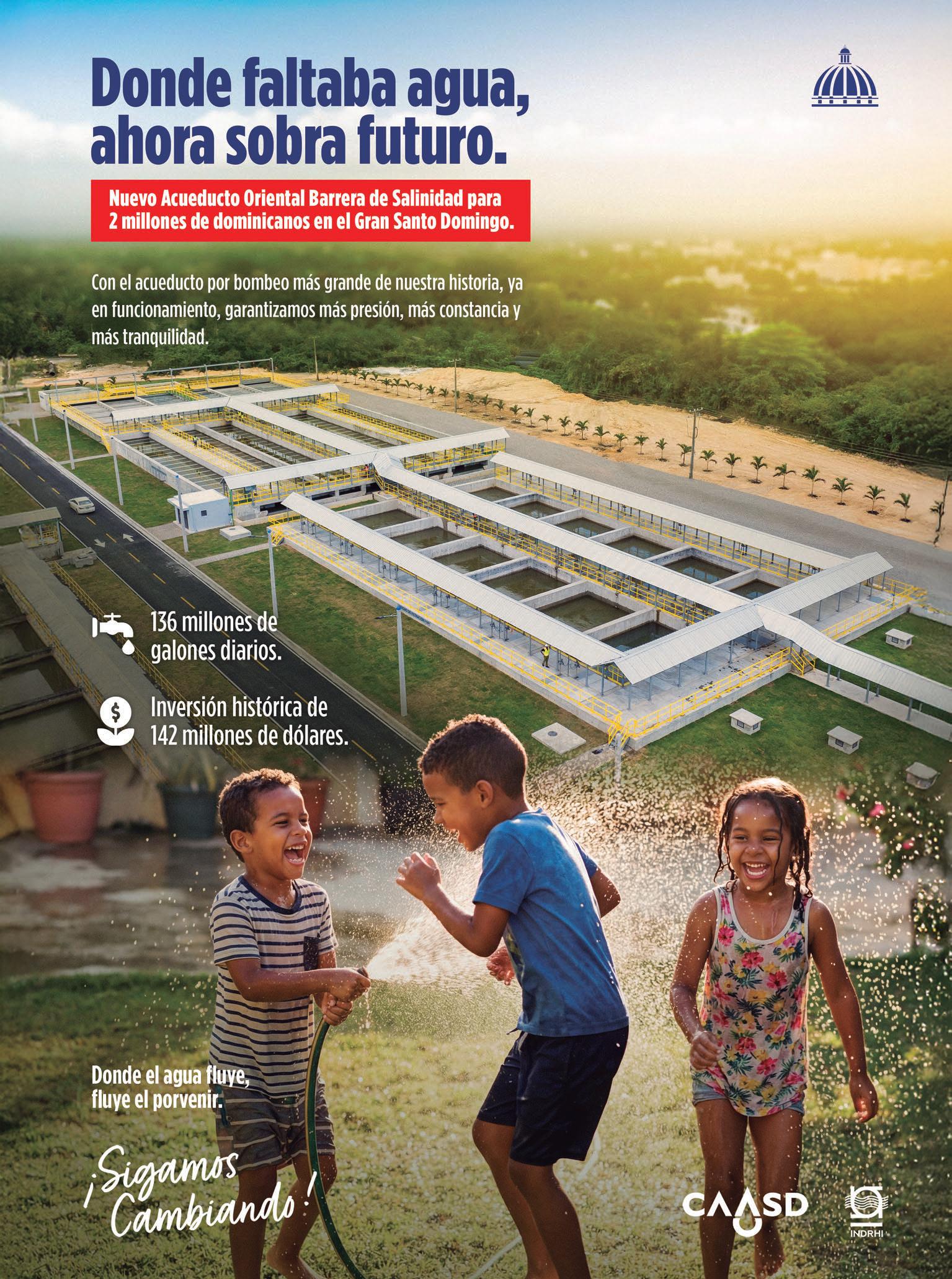 que van a ayudar significativamente a Santo Domingo Este y Santo Domingo Norte”, afirmó el mandatario. Manifestó que en el tercer trimestre de este año mejorarán significativamente también unos dos metros cúbicos más en Santo Domingo con el acueducto de Haina, el cual impactará a Santo Domingo Oeste y el Distrito Nacional. Abinader señaló que su