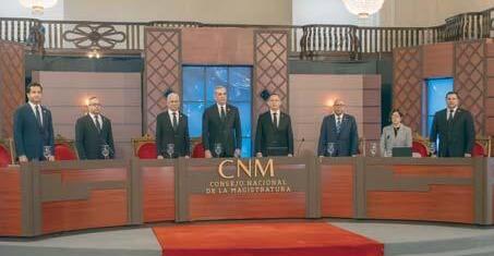 El Consejo Nacional de la Magistratura (CNM) está integrado por ocho miembros e incluye al presidente de la República, quien lo encabeza y tiene voto calificado. Además del mandatario, lo conforman los presidentes del Senado y de la Cámara de Diputados, ambos del partido oficialista. También lo integran un senador y un diputado escogidos por el Senado y la Cámara de Diputados, respectivamente, que pertenezcan al partido o bloque de partidos diferentes al del presidente del Senado y de la Cámara de Diputados, y que ostenten la representación de la segunda mayoría. Completan el CNM el presidente de la Suprema Corte de Justicia; un juez de la Suprema Corte de Justicia escogido por ella misma; y el presidente del Tribunal Constitucional. b