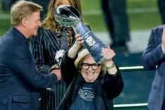 Jody Allen, pdta de los Seahwaks con el trofeo.