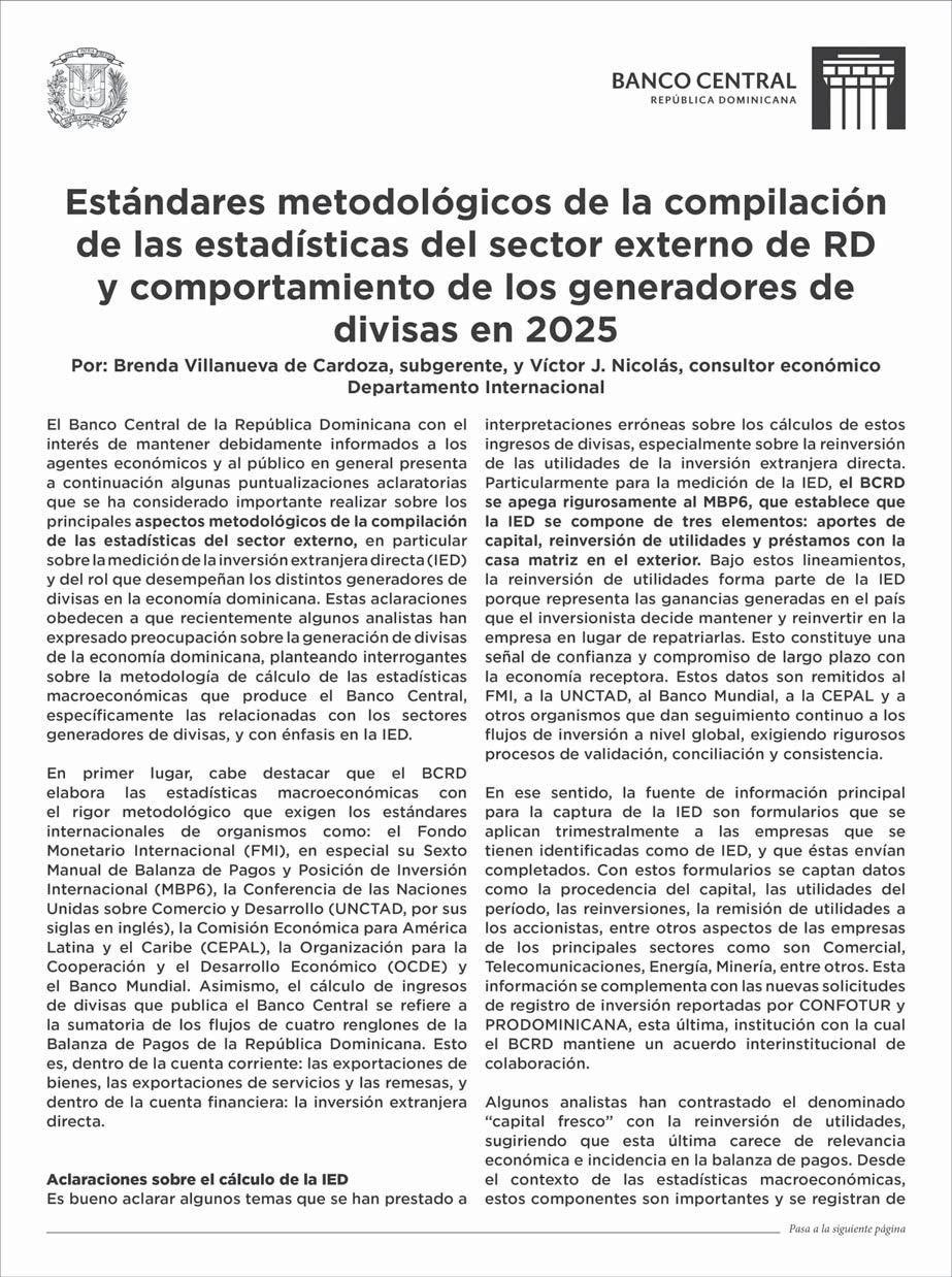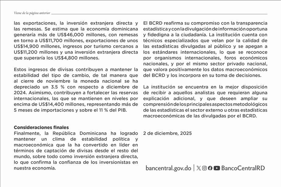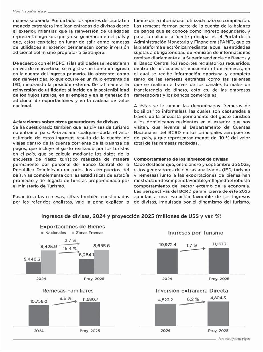 turísticos que ascienden alrededor de 11,200 millones y una inversión extranjera directa (IED) que superaría los 4,800 millones de dólares, según proyección del Banco Central para el cierre de este año. b P15