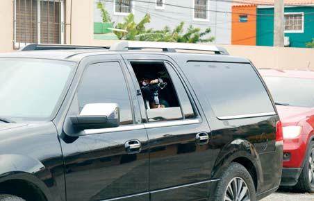 SANTO DOMINGO. Un miembro de la Unidad de Traslado de Alto Riesgo del Cuerpo de Agentes de Vigilancia y Tratamiento Penitenciario Dominicano (VTP) apunta con un fusil automático desde una yipeta en la que transportaron a parte de los imputados por el caso Operación Panthera 7, mediante el cual las autoridades dominicanas incautaron casi 10 toneladas de cocaína en el Puerto Multimodal Caucedo.