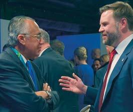 Luisín Mejía y J.D. Vance conversan en Milán, Italia.