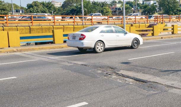 p SD. Las juntas del puente Juan Pablo Duarte presentan nuevamente un avanzado deterioro que provoca tapones y daños a vehículos. La situación ocurre pese a que el Estado invirtió 60 millones de pesos en su reparación hace menos de cuatro años. Los hoyos afectan con mayor fuerza a motoristas y conductores que intentan esquivarlos. Personas consultadas atribuyen el deterioro a la mala calidad de los materiales utilizados. b P10