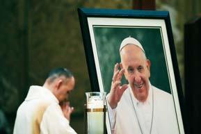 p CIUDAD DEL VATICANO. Una mujer sostiene una foto del papa Francisco, quien falleció ayer a los 88 años de edad como consecuencia de un accidente cerebrovascular sufrido apenas un día después de haber celebrado la misa de Domingo de Resurrección. Francisco ingresó al hospital Gemelli el 14 de febrero de 2025 por una crisis respiratoria que derivó en una neumonía bilateral. Pasó 38 días hospitalizado, el periodo más largo en sus 12 años como pontífice. b P4-6