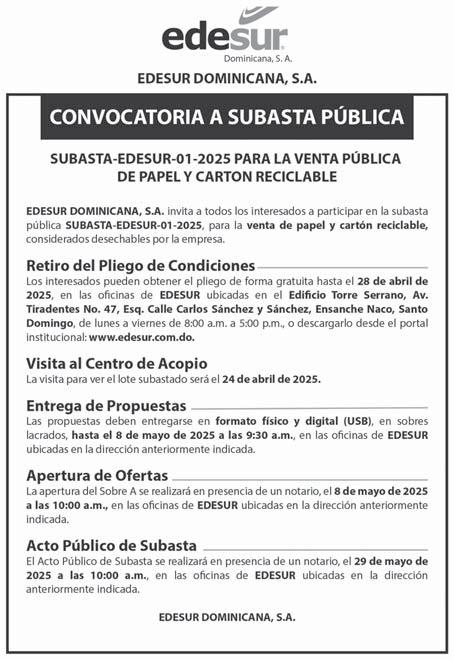 El presidente Luis Abinader declaró tres días de duelo oficial a partir de hoy por la muerte del papa Francisco, quien falleció este lunes a los 88 años en su residencia de la Casa Santa Marta. En un decreto, Abinader resaltó la figura del pontífice “como un líder global que impulsó importantes reformas dentro de la Iglesia católica y se caracterizó por su humildad, apertura al diálogo y compromiso con la paz entre los pueblos”. Durante las jornadas de duelo, la bandera nacional ondeará a media asta en los recintos militares y edificios públi-