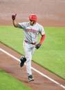 0 Jeimer Candelario, de los Rojos, celebra su jonrón el pasado viernes 18 de abril de 2025. 457