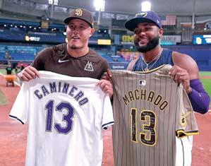 Machado y Caminero intercambiaron camisetas en Tampa.