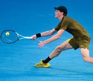Jannik Sinner se estira para salvar una pelota en Australia.