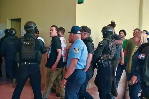 0 Momento en que los imputados son trasladados al Palacio de Justicia de Santiago.