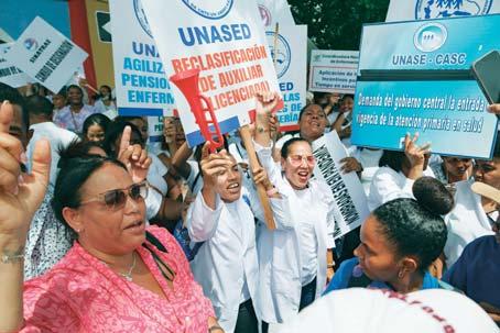 p SANTO DOMINGO. Los gremios de enfermería realizaron ayer una protesta frente al Palacio Nacional para exigir al Gobierno el cumplimiento de acuerdos que, según afirman, llevan años pendientes. La protesta se produjo un día después de que el presidente Luis Abinader afirmara en LA Semanal con la Prensa que el Gobierno ha cumplido con el sector de enfermería y sus reclamos de aumentos salariales.