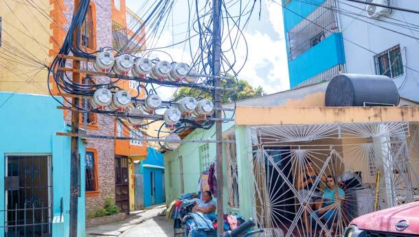 p SD. Vivir en un callejón es una de las realidades urbanas de muchos barrios de Santo Domingo, a pesar del progreso que muestran torres de apartamentos de múltiples niveles y fachadas decoradas. Llevar energía eléctrica y medir el consumo sigue siendo un reto para las autoridades, que necesitan cobrar por el servicio. La imagen tomada en Villa María, en el Distrito Nacional, ilustra la “organización” que se ha establecido para garantizar el suministro y la facturación en medio del laberinto que crean los traspatios o “parte atrás”.