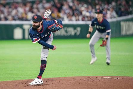 Al abandonar el montículo fue despedido con una ovación de pie por los aficionados japoneses.