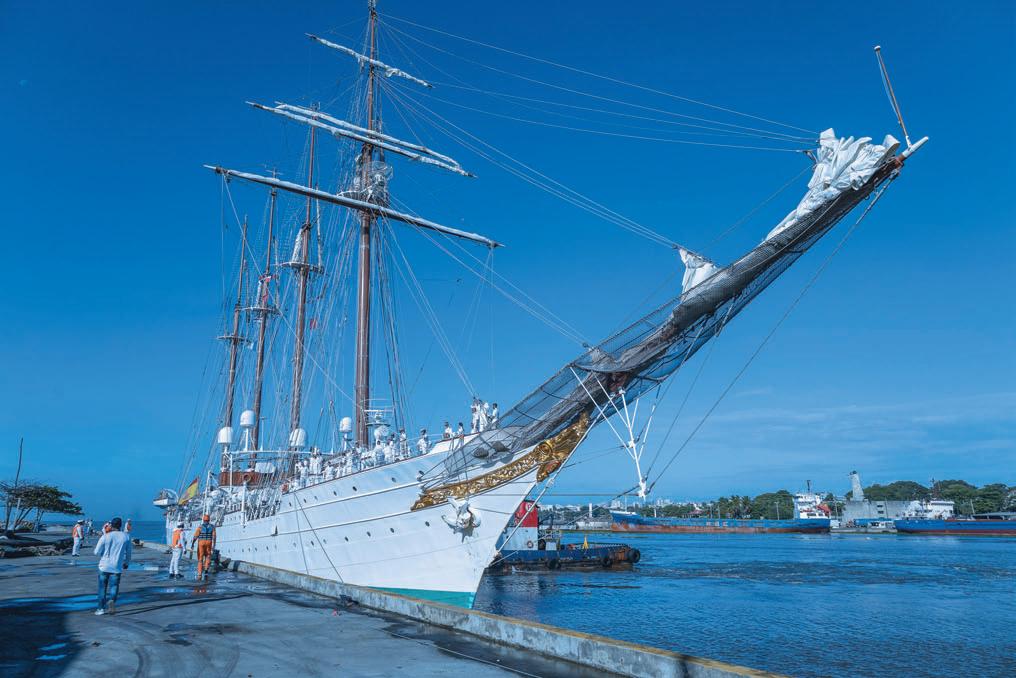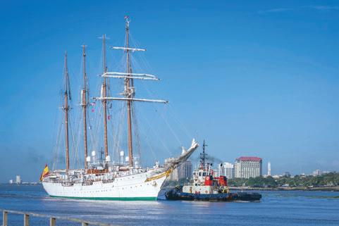p SD. El buque escuela Juan Sebastián de Elcano arribó ayer a Sans Soucí, donde fue recibido por la Armada Dominicana. El navío, de casi un siglo de historia y dedicado a la formación de oficiales de la Armada Española, ha recorrido cerca de 1.9 millones de millas náuticas y visitado más de 70 países. El 19 de mayo del año 2025, la misma embarcación atracó en Santo Domingo con la princesa Leonor, primera en la línea de sucesión al trono de España. En esta ocasión trae 73 guardamarinas. b P9 . ELCANO ESTÁ DE VUELTA .
