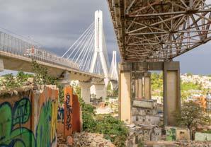 Las lluvias del 19 de noviembre de 2023, que colapsaron la pared del paso a desnivel de la 27 de Febrero con Máximo Gómez (tragedia que dejó nueve muertos), fue lo que agilizó la intervención del puente de la Hípica, afectado por el salitre. Las labores incluyen la ampliación del giro y la colocación de columnas metálicas. b