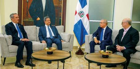 SANTO DOMINGO. El presidente Luis Abinader encabezó ayer en la Biblioteca Nacional un encuentro con los expresidentes Hipólito Mejía, Leone l Fernández y Danilo Medina, junto a Rafael Toribio, coordinador del Consejo Económico y Social (CES), como continuación del diálogo nacional para consensuar respuestas a la crisis haitiana y su impacto en la República Dominicana. b P4 Y P5