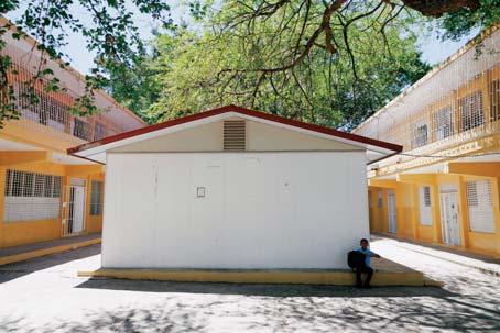 centros educativos con una inversión de 230,282,770.08 de pesos. En el Centro Educativo Adelaida Acosta, en Hato Nuevo, hay habilitadas dos aulas móviles al lado de la cancha de la escuela, equipadas con mobiliario escolar: butacas, pizarrón, escritorio y sillas para el docente. Fueron levantadas en aproximadamente 15 días, según reporta el director del centro, Alfredo Lizardo. Cuatro abanicos de pared para ventilar el espacio, más cuatro ventanas, permiten a los estudiantes soportar el calor del verano. Las aulas actualmente albergan a 32 alumnos cada una y resolvieron el problema de falta de espacio en la escuela.