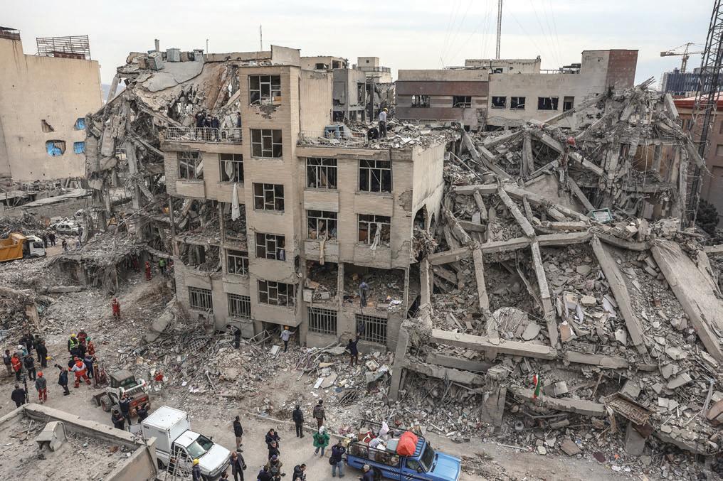 p TEHERÁN. Los trabajadores de rescate se reúnen fuera de un edificio residencial dañado por ataques de Israel y Estados Unidos en la capital iraní, mientras los residentes recogen sus pertenencias de los escombros. La guerra en Oriente Medio llega a su decimocuarto día, sin que se atisbe un fin cercano. Israel advirtió de nuevos bombardeos contra Irán, que prometió continuar la ofensiva contra objetivos militares de sus enemigos. b P16