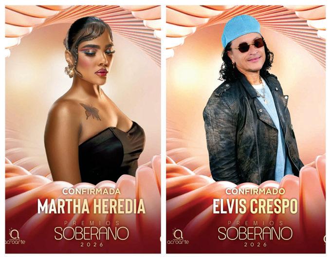 SD. La gala de los Premios Soberano volverá a reunir a grandes figuras de la música el próximo 18 de marzo, y entre los artistas que prometen encender el escenario destacan la cantante dominicana Martha Heredia y el merenguero puertorriqueño Elvis Crespo. Ambos intérpretes forma-