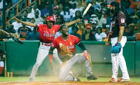 LA ROMANA. El Escogido dio otro golpe sobre la mesa y colocó la serie final en una posición como para comenzar a alucinar y diseñar la serigrafía de la corona 18. Los rojos se impusieron ayer por 7-4 sobre los Toros del Este en el Francisco Micheli y ahora dominan 2-0 la fase del campeonato que define al ganador del torneo. Yamaico Navarro, cojeando con molestias en su pierna derecha, encabezó la ofensiva con doble, sencillo y remolcó tres vueltas para unos escarlatas que se aprovecharon de un oxidado Nabil Crismatt para colocarse en posición inmejorable.