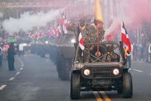 ron bandas musicales de cadetes, cuerpos de seguridad de los aeropuertos, ambientales, viales y contra el comercio ilícito, linces, comandos especiales, los diferentes cuerpos de seguridad. Este año desfilaron tres ambulancias ensambladas en el país, cómo de la industria militar criolla.b