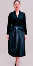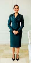 La directora de Supérate escogió un diseño de Michelle Reynoso. Nos encanta la falda plisada combinada con una chaqueta peplum de cuello en pico, entallada en la cintura.